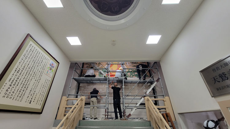 天台宗天鷲寺様(大阪市天王寺区) 紙本壁画「仏教東漸図」の移設