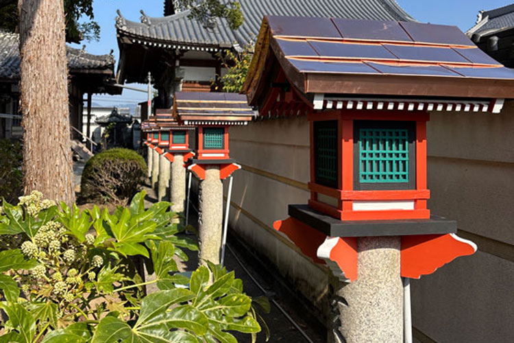大念佛寺様(大阪市平野区)に特注六角菱燈籠を納入しました。火袋は手打ち彫金・毘沙門亀甲文様透かし・金箔仕上げ。