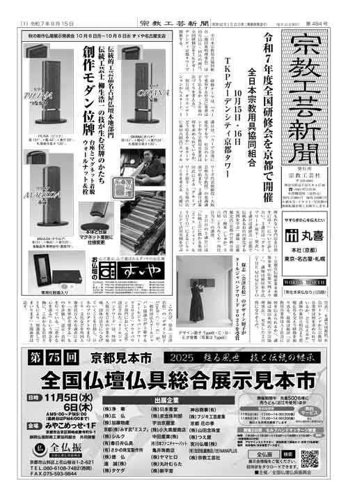 宗教工芸新聞9月号では、位牌特集をはじめ、豊富な記事を掲載しています。...