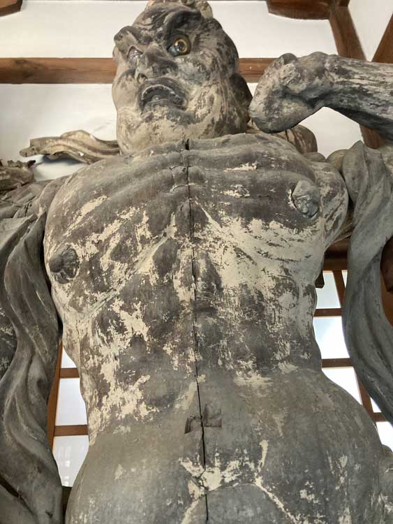 八正寺様 仁王像引き取り前 塗りが剥げ落ち下地が向きだしの状態