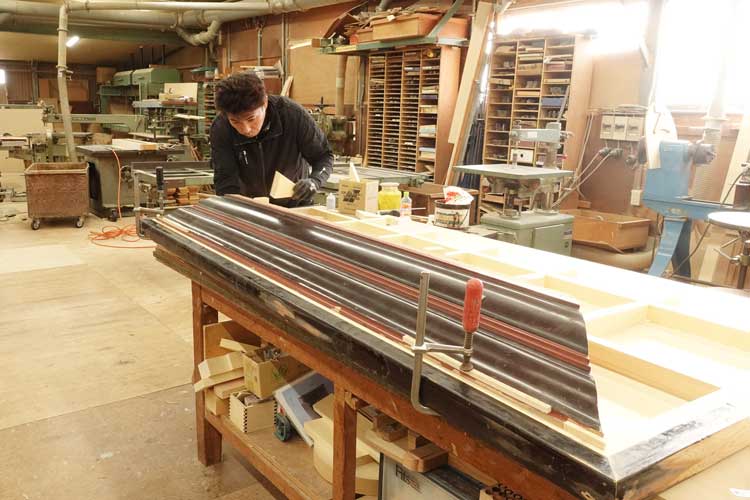 神谷商事(愛知県岡崎市)は自社工場での納骨壇製作、寺院仏具新調・修復に実績を重ねてきた。自社工場では設計・図面製作に始まり、木地製作、下地・下地研磨、塗り仕上げまでを行う。